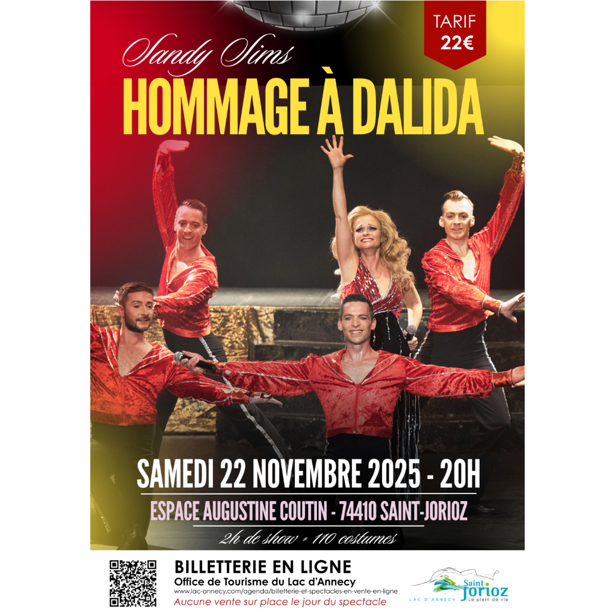 Interprété en direct par Sandy SIMS, avec imitation de la voix de Dalida, ce show de 2h est une ode à la musique et à la danse. Accompagnée de 4 danseurs, l’artiste revêtira tout au long de la soirée plus de 100 costumes, copies réelles des tenues de scène de Dalida dont elle est la seule à avoir l’autorisation de les porter.