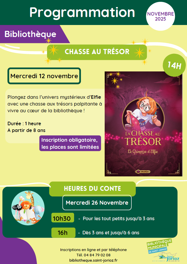 La Bibliothèque municipale de Saint-Jorioz vous propose l'animation gratuite "Heures du conte" le mercredi 26 novembre 2025 dans ses locaux :