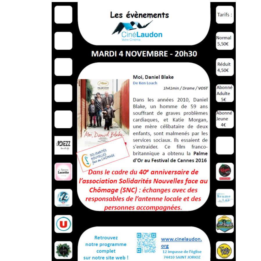 La projection sera suivie d’un temps d’échanges avec des responsables de l’antenne locale de Solidarités Nouvelles face au Chômage (SNC) et des personnes accompagnées dans le cadre du 40e anniversaire de l’association SNC.