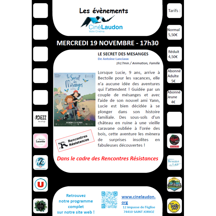 Le Ciné Laudon projetera le film d’animation « Le Secret des Mésanges » le mercredi 19 novembre 2025 à 17h30 dans le cadre des "Rencontres du film des Résistances".