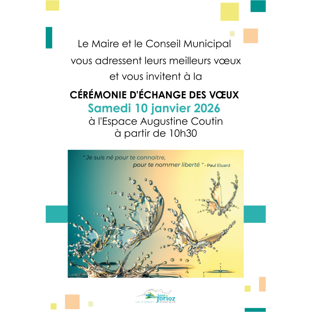 Le Maire et le Conseil Municipal vous adressent leurs meilleurs vœux et vous donnent rendez-vous le samedi 10 janvier 2026 pour la cérémonie d'échange des vœux à partir de 10h30 à l'Espace Augustine Coutin.