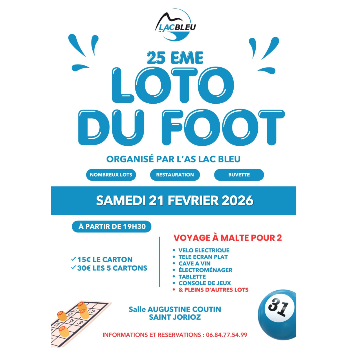 L’AS Lac Bleu organise son 25e loto du foot le samedi 21 février 2026 à partir de 19h30 à l'Espace Augustine Coutin.