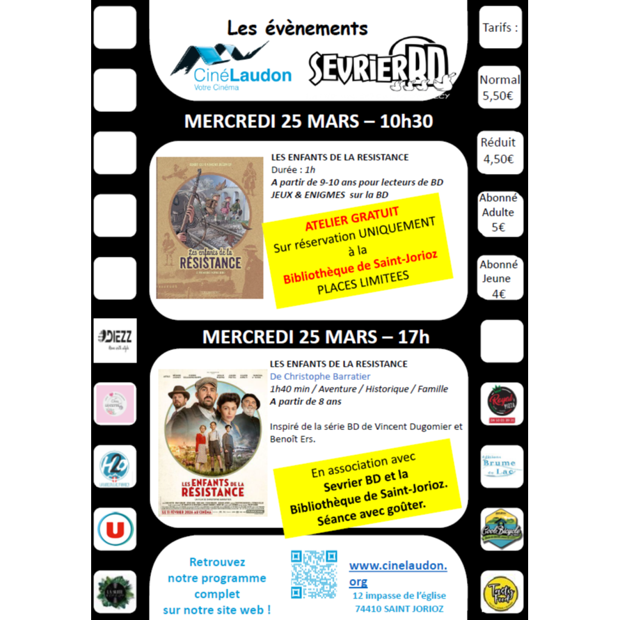 En association avec Sevrier BD et la Bibliothèque municipale, le Ciné Laudon projettera le film « Les enfants de la Résistance » le mercredi 25 mars 2026 à 17h30.