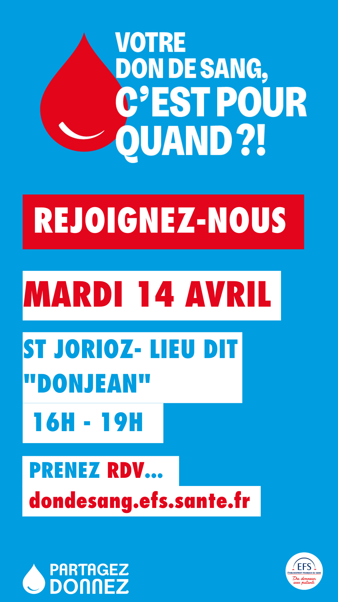 Pensez à privilégier la prise de rendez-vous en ligne sur : https://dondesang.efs.sante.fr.
