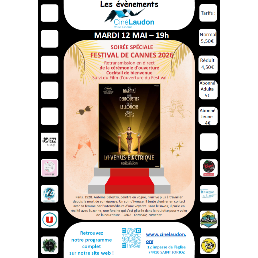 En écho au prestigieux festival international de cinéma, le Ciné Laudon organise une soirée spéciale « Festival de Cannes 2026 » le mardi 12 mai 2026 à 19h :